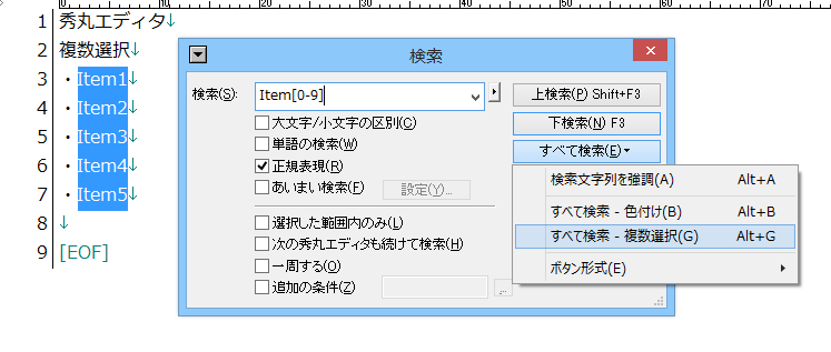 (5)検索ダイアログからヒットする文字列を同時に選択