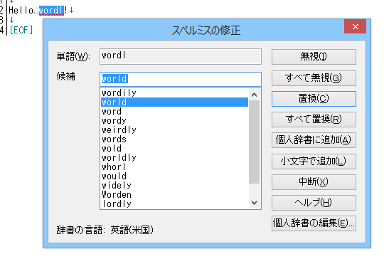 > 秀丸エディタ 新機能の紹介(スペルチェック対応)