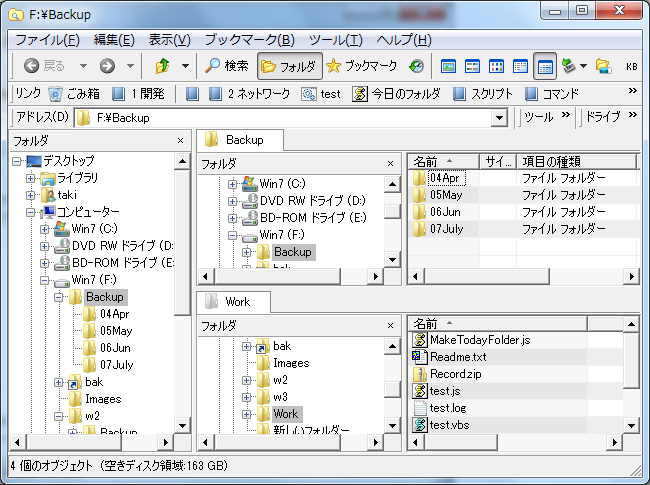 タブごと、分割ごとにフォルダツリーを表示できます。