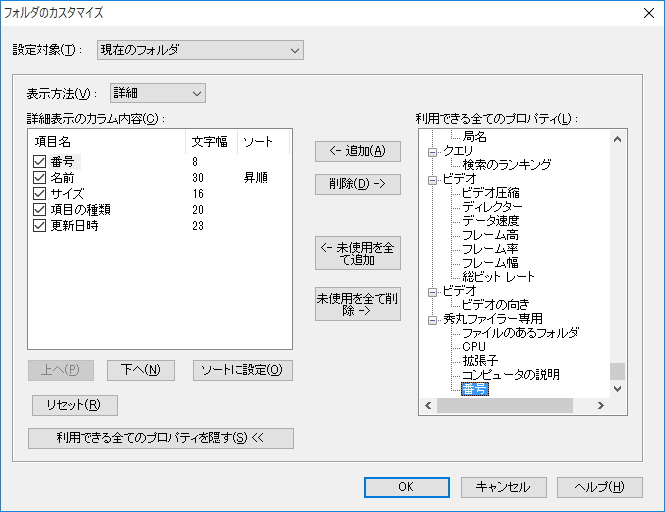 「詳細」表示のカラムに「番号」を追加可能にし、一覧の中の何番目のファイルかを見やすく設定できます。