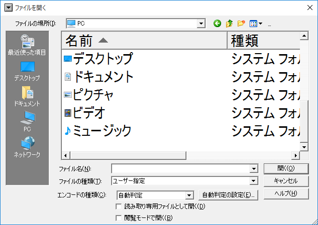 ファイルの内容を解析して、ASCII/Shift-JIS/UTF-16(BOMあり)/UTF-8/UTF-8(BOMあり)を判別できます。