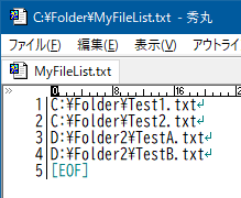 例えば、好みのファイルを集めたファイル名の一覧だたり、何らかの外部のアプリが出力したファイル名の一覧を使うことができます。