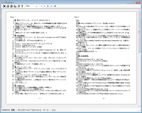 以前までのバージョンでは、単純に一枚の用紙に1ページを印刷するのみでしたが、印刷テンプレートに複数の本文BOXが配置可能になったVer4.00では、「袋綴じ印刷」「中綴じ印刷」「平綴じ印刷」等の製本用の印刷が行えるようになりました。