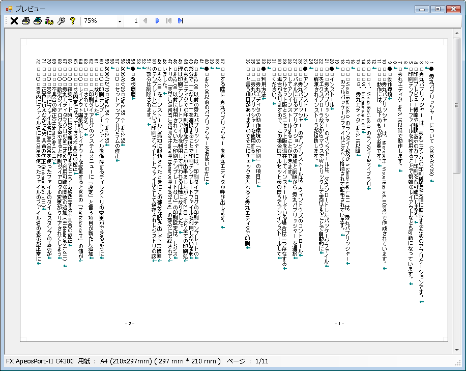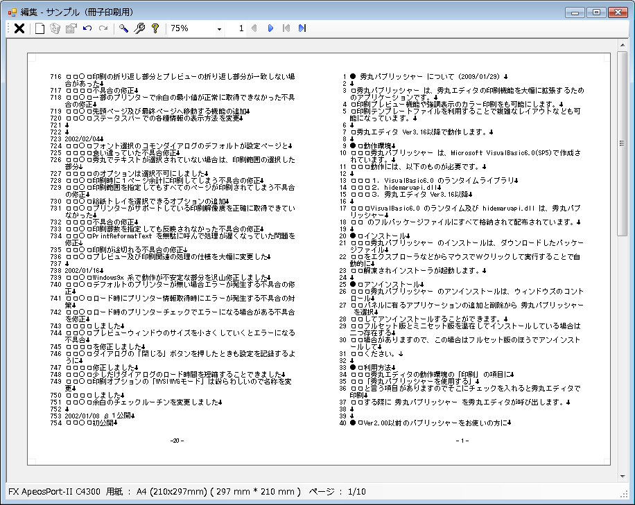 秀丸パブリッシャーVer4.00から従来専用の印刷ツールなどを利用しないと行えなかった中綴じ印刷や平綴じ印刷などの、冊子作成時に利用される印刷機能をサポートしました。