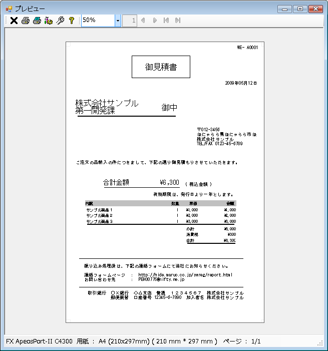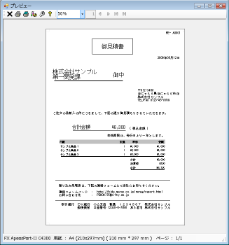 印刷テンプレートでのレイアウトサンプルの見積書です。