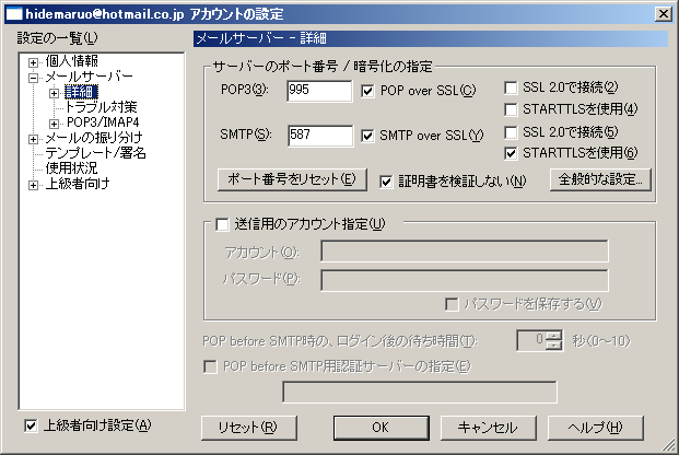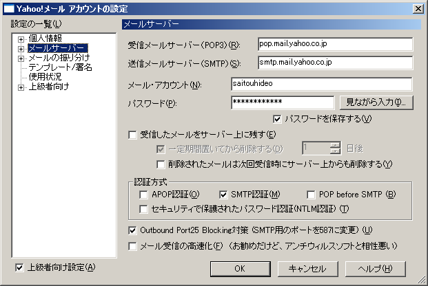 I サーバーを検索中 - pop.mail.yahoo.co.jp