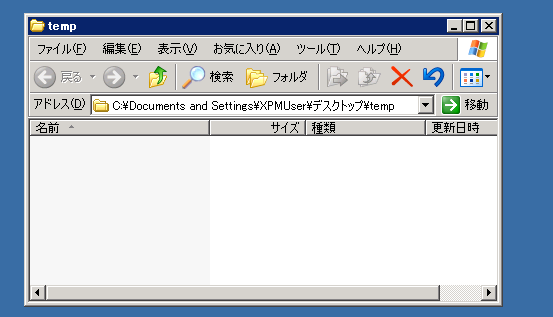フォルダ名を、例えば"temp"に変更する。